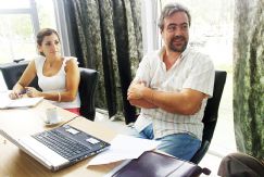 | Horacio Botta Bernaus, junto a Irene Manzanares, del Centro Neurológico, en una de las reuniones preparatorias |