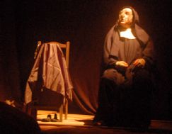 La pieza, encarnada a modo de monólogo por Giovanni Boni, dirigida por Lino Spadaro y Renzo Sicco y escrita por Laura Pariani, cumplió con todos los elementos de rigor dramático/fantástico. El incremento paulatino de la tensión, una excelente iluminación, la intervención de voces (en off) del pasado que regresan a su mente y un juego de trasluces con imágenes alegóricas en pantalla y actores de carne y hueso exhibiéndose detrás. La única contra resultó la pronunciación -adrede- del parlamento mezclando el castellano y el italiano. El espectador poco preparado sólo comprendió el nudo de la historia en el cierre, cuando la “monja” puso play a un casete donde confiesa ser un hombre mestizo y castrado, que ingresó al convento en busca de su amor imposible.