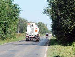 | A puro riesgo, ciclistas y motociclistas comparten la angosta calzada de la ruta 2. Con banquinas descalzadas y otro sector con malezas la posibilidad de accidentes está siempre latente |