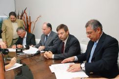En la Sala Oval del Palacio Municipal se desarrolló la rúbrica del convenio con la presencia del apoderado de la empresa adjudicataria, Sergio Bernard, el vicepresidente del ente intermunicipal Javier Pretto y el secretario de Coordinación General y Desarrollo Urbano, Héctor Muñoz.