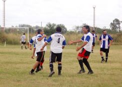 | Festejo. Los jugadores de Construcciones Nonis celebran una de sus tres conquistas que lograron ayer para ganarle a Adelpa/Abelcar. En la otra foto, un instante del duelo entre Protect y Unión Comercial de La Palestina |
