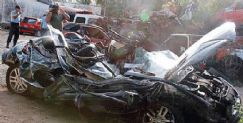 | El coche, ya de día, en la Comisaría, luego que el colectivo se le cayera encima, (gentileza La Voz del Interior) - Dos imágenes del accidente obtenidas en el lugar del hecho por el fotógrafo bellvillense Gillermo Roth (Epec), gentileza de DiarioMarc |