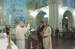 Valeria caminó por el pasillo central de la Catedral con un vestido sencillo que llegaba abajo de sus rodillas, de color blanco. Un lazo naranja a la cintura y un ramo de flores naranjas apretujado en las manos. Al pie del altar la aguardó Pablo. Y cuando se unieron, tuvieron ante sí al padre José “Pepe” Cruchinho, padre, además, del mismo Pablo. Para concelebrar se acercó el párroco habitual Pedro Luchesse de la iglesia.