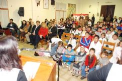 | Un salón colmado de niños, padres, docentes y periodistas siguió las instancias del acto |