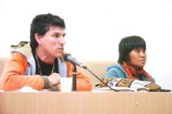 | Néstor Gea y Fidelina Díaz de la comisión 19 de Abril hablaron de la religión pómis jisáwo |