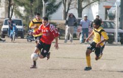 | Corrida. Diego Gabetta, autor del segundo gol del elenco tiopujiense, se le escapa a Rodrigo Aguirre, quien luego se fue expulsado |