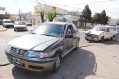 El choque del día se registró ayer en la esquina de Sarmiento y 9 de Julio, una intersección muy concurrida y transitada, generalmente, a una velocidad por encima de lo permitido y aconsejable. Allí colisionaron poco antes de las 15 un Fiat 128 dominio TRP 931, conducido por Ezequiel Novillo, de 21 años, y un Volkswagen Gol, patente FEH 795, guiado por Fernanda Bertea, de 31 años. En ambos vehículos se registraron daños (foto).