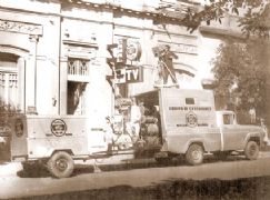 Vienen al recuerdo los nombres de quienes aparecían en pantalla, pero también los de muchos que se encontraban detrás de la cámara. En la fotografía que ilustra esta página, puede verse, arriba de la camioneta, a “Lalo” Jouvet y en la segunda cámara a Mario Carraro.