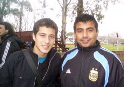 | En Lanús. Moretti, uno de los organizadores de la prueba, estuvo en Lanús y posó con Sebastián Blanco, una de las figuras del fútbol argentino |