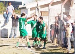 | Alegría verde. Valle y compañía celebran el único gol de Rivadavia, el que dio un gran triunfo en Tío Pujio |