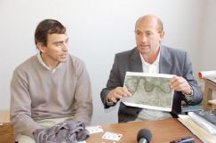 | El dirigente y atleta Julián Sarmiento, junto a Rapetti, en la presentación de la prueba combinada |