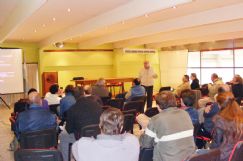 Epígrafes: 1) La jornada contó con asistencia de profesionales que también se dedican a la comercialización de agroquímicos y otros insumos para la nutrición animal