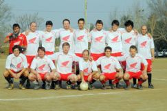 | Goledada. Honda Ramón Suárez contó con una tarde inspirada y goleó por 5-0 a Calzados La Argentina. Abajo, el elenco de Cannata Seguros, que perdió por la mínima ante El Sanma |