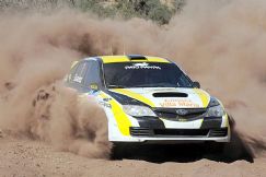 | Germán Suárez/Monasterolo (Subaru) cuando tenían todo para festejar un podio en el rally Cordobés, una parrilla de suspensión los privó del halago (Crédito Prensa EZD) |