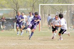| Salida. El jugador de Drugstore intenta encabezar un ataque de su equipo mientras llega la compañía de los rivales. Abajo, un instante del encuentro entre el líder, Carnes Friar, y CyL Alto Alegre |