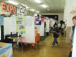Dos imágenes de la muestra dejan entrever que el salón del club 9 de Julio estuvo colmado de empresas y comercios que dijeron presente en esta edición de la ExpoPasco.