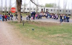 | Uno de los momentos más bellos de la Ericca fue cuando los estudiantes primarios llegaron al lugar en el tren de pasajeros |