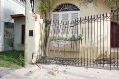 También como consecuencia de la fuerte colisión, al automóvil desvió su camino y terminó incrustándose en la reja de la vivienda ubicada en Santiago del Estero 1641, donde residen Carlos Alberto Giraudo y su esposa, la abogada Marta Marinari, informó la Policía.