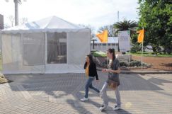 | Ayer se ultimaban los detalles en la plaza céntrica, con la instalación de carpas. En el centro educativo se brindarán talleres, espectáculos y muestras para niños |