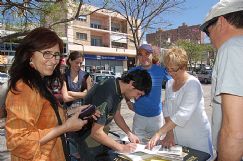Se realizó ayer, en el centro y la costanera, una volanteada a cargo de Vecinos Autoconvocados contra Innviron, para llevar información a los ciudadanos sobre lo que es el proceso de gasificación.