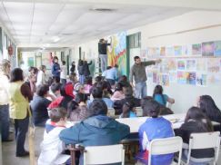 Los anfitriones cursan sexto grado de Nivel Primario. “El profesor de Plástica, David Rubiolo, encargado de los murales, realizó un taller de dibujo con los chubutenses. Estuvo fantástico”, contó.