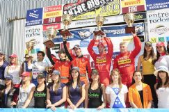 | El podio de la N4 en Concepción del Uruguay con Menzi, Curletto, Villagra, Pozzo y el villamariense Stillo |