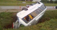 | El microbús en el que viajaban los escolares de Buenos Aires volcado en el camino a San Antonio |