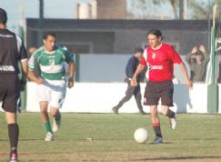 | Goleador. Diego Marín domina la pelota. El delantero marcó el único tanto en el triunfo de Yrigoyen |
