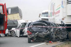 | Imágenes del múltiple accidente que se cobró nueve vidas entre Laguna Larga y Pilar. La autopista permaneció cortada gran parte de la jornada de ayer |