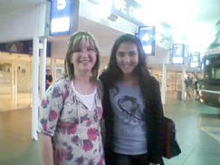 | Delfina Coria y una docente de la casa están en Mar del Plata |
