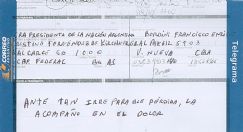 El concejal villanovense Francisco Bordini, por ejemplo nos hizo llegar copia del telegrama que envió a la presidenta de la Nación. Escrito de su puño y letra, se lee en el mensaje remitido a Balcarce 50 de la ciudad de Buenos Aires: “Ante tan irreparable pérdida, la acompaño en su dolor”.