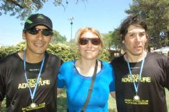 | Jofré llega al Sport Social luego de 15 kilómetros extenuantes, donde superó diferentes dificultades del terreno. F2: La entrenadora Carola Doñate, junto a Jofré y Benítez, dos de sus pupilos, que llegaron primero y segundo en la clasificación |