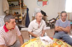 1- En el centro, Mario Olsina, flanqueado por Pablo Aldanondo y Carlos Cech, dos jóvenes que empezaron a partir de bulbos, adquiridos al productor, a cultivar azafrán