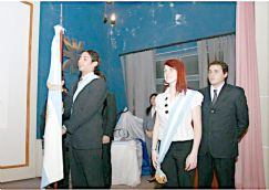 | En la fotografía, el nuevo abanderado de la Tecnológica con sus escoltas |