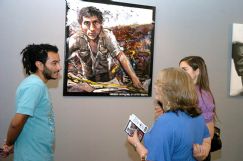 Vélez, quien ha participado de otros certámenes en nuestra ciudad, cuenta con un segundo premio en un concurso de fotografía en Cosquín y una obra seleccionada en un salón de grabado en Junín, había arribado a nuestra ciudad meses atrás con un grupo de artistas de stencil para realizar intervenciones junto a estudiantes de Bellas Artes.