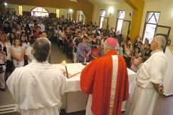 El lugar estaba abarrotado de fieles, lo que motivó que muchos tuvieran que seguir las instancias de la celebración desde afuera.