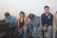| F1: De izquierda a derecha, Centeno, Paz, Medhi y Lesipan. Los dos primeros fueron condenados a dos años en suspenso y los autores del asalto recibieron penas de ocho años y cuatro meses. F2: Los abogados Pizzicardi Bordoy, Silvina Muñoz y Silvano |