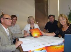 1) La intendenta de Tío Pujio Nancy Schiavi recibe los planos y el proyecto de manos del titular de Axxión, el contador Daniel Rosso. Al lado de la jefa comunal aparece José María Salusso