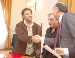 | Martín Alfiz saludando a Accastello a fines de noviembre cuando se firmó la concesión junto a su padre Lucio |