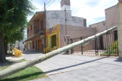 Un grupo de personas que habitan en cercanías de bulevar Italia al 500 reclaman por un poste con cables de telecom que cayó sobre una vivienda en vísperas de Navidad y se mantenía hasta ayer en idéntica posición, obstruyendo el paso peatonal.