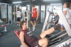 Epígrafes: 1) Una dura rutina de pesas hubo ayer en la primera jornada luego del receso