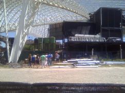 A pocos minutos de que se produjera un accidente en uno de los accesos al Anfiteatro Municipal (ver Policiales), un grupo de personas accedió ayer al interior del coloso de la costanera para apreciar el estado de las obras de techado, sin las medidas de seguridad correspondientes (cascos). Un verdadero y riesgoso desatino.