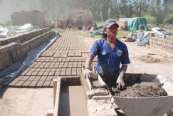 | Sandro Mamani, en el cortadero de ladrillos que es el medio de vida digno para su familia |