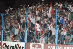 | Algarabía. Los jugadores se subieron al alambrado para celebrar con los hinchas la gran victoria (foto de Diego Borghi, de Cooperativa Al Toque) |