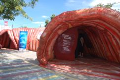 Una representación de un colon humano de grandes proporciones, fue definido por el Gobierno local como el puntapié inicial de una campaña anual de prevención del cáncer.