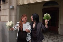 El 22 de octubre pasado, en tanto, contrajeron matrimonio en el Registro Civil de esta ciudad. Tras dar el sí, realizaron un almuerzo con familiares y amigos en el Sport Social Club, al que asistió el cura (separado de la Iglesia Católica por sus dichos a favor del matrimonio igualitario) Nicolás Alessio, quien bendijo a la pareja y a la futura niña.