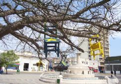 Junto al área Cultura de la Universidad Popular y estudiantes de la recientemente reabierta carrera de Animación Socio-Cultural del Inescer se montaron obras de carácter efímero, con materiales reciclables como sillas en desuso y materiales no tóxicos, que terminaron coronando las copas de los tradicionales árboles de la plaza, como se observa en la foto de esta nota.