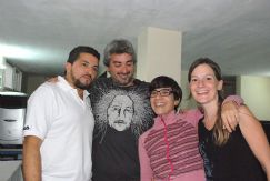 | El equipo responsable de lo que pasa en el escenario comandado por Salvy Gomes (izquierda) y con Vicky Carzoglio (de lentes) a cargo de la logística. En las siguientes fotografías, Mauro Rabozzi y Osvaldo Cantón |