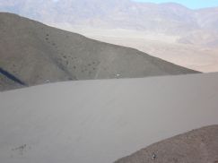 Así, escalarlo resulta una actividad sumamente placentera. Subir la cuesta es hundir piernas y manos en un gigantesco colchón natural. Con la seguridad que ello brinda, se puede llegar hasta la cima sin problemas y desde allí obtener impresionantes panorámicas del valle. La altura marea, pero el hecho de saberse protegido por el terreno, permite lanzarse sin temores hacia la base del gigante. Rodando como niños, los turistas realizan el periplo a las carcajadas. Los más intrépidos utilizan tablas de sandboard y como quien monta una patineta por pendientes bien inclinadas, llegan a destino a pura adrenalina. En los alrededores, los cerros brindan el decorado perfecto.