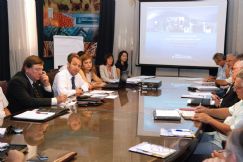 | Panorama de la última reunión entre Jorge Videla, subsecretario de Lechería, y representantes de los trabajadores lácteos, productores e industriales junto a directivos del Banco Nación |
